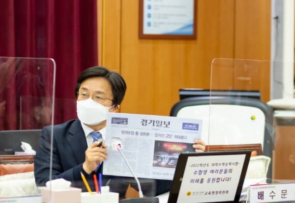 경기도의회 교육행정위원회 배수문 의원(더민주, 과천)은 16일 경기도교육청 남부청사에서 열린 2021년 행정사무감사에서 최근 발생한 원격수업 도중 학생에 의한 성희롱 사건을 언급하며, “최근 들어 교권침해의 유형이 다양해지고 있을 뿐만 아니라 작년부터 이어지고 있는 비대면 수업 장기화로 인해 ‘사이버 교권침해’가 새롭게 등장했다”고 강조하였다.