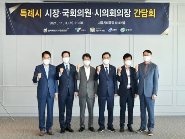 한편, 이날 간담회에는 허성무 창원시장과 염태영 수원시장, 백군기 용인시장, 이춘표 고양 제2부시장을 비롯해 김진표, 박광온, 김영진, 백혜련, 김승원(이상 수원시), 최형두(마산합포구), 홍정민, 이용우(이상 고양시), 정춘숙, 이탄희(이상 용인시) 국회의원이 참석하였다. 이밖에 조석환 수원시의회의장, 이길용 고양시의회의장, 김상수 용인시의회부의장(대참), 이치우창원시의회의장 등이 참석해 특례권한 확보 방안을 집중 논의했다.