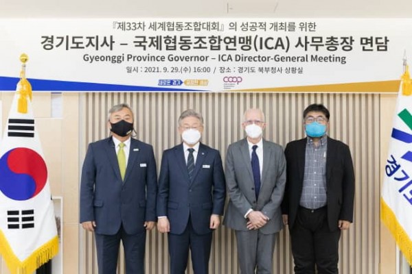 이재명 경기도지사가 29일 오후 경기도 북부청사에서 브루노 롤란츠(Bruno Roleants) 국제협동조합연맹(ICA) 사무총장과 면담을 갖고, 오는 12월 한국에서 개최되는 ‘제33차 세계협동조합대회’의 성공적인 개최를 위해 의견을 나눴다. 경기도는 이 대회 공식 한국파트너로 참여하고 있다.