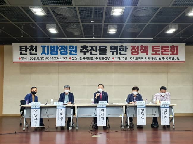 경기도의회 기획재정위원회 이제영 의원(국민의힘, 성남7)은 30일 성남 한국잡월드 한울강당에서 ‘탄천 지방정원 추진을 위한 정책 토론회’를 개최했다.
